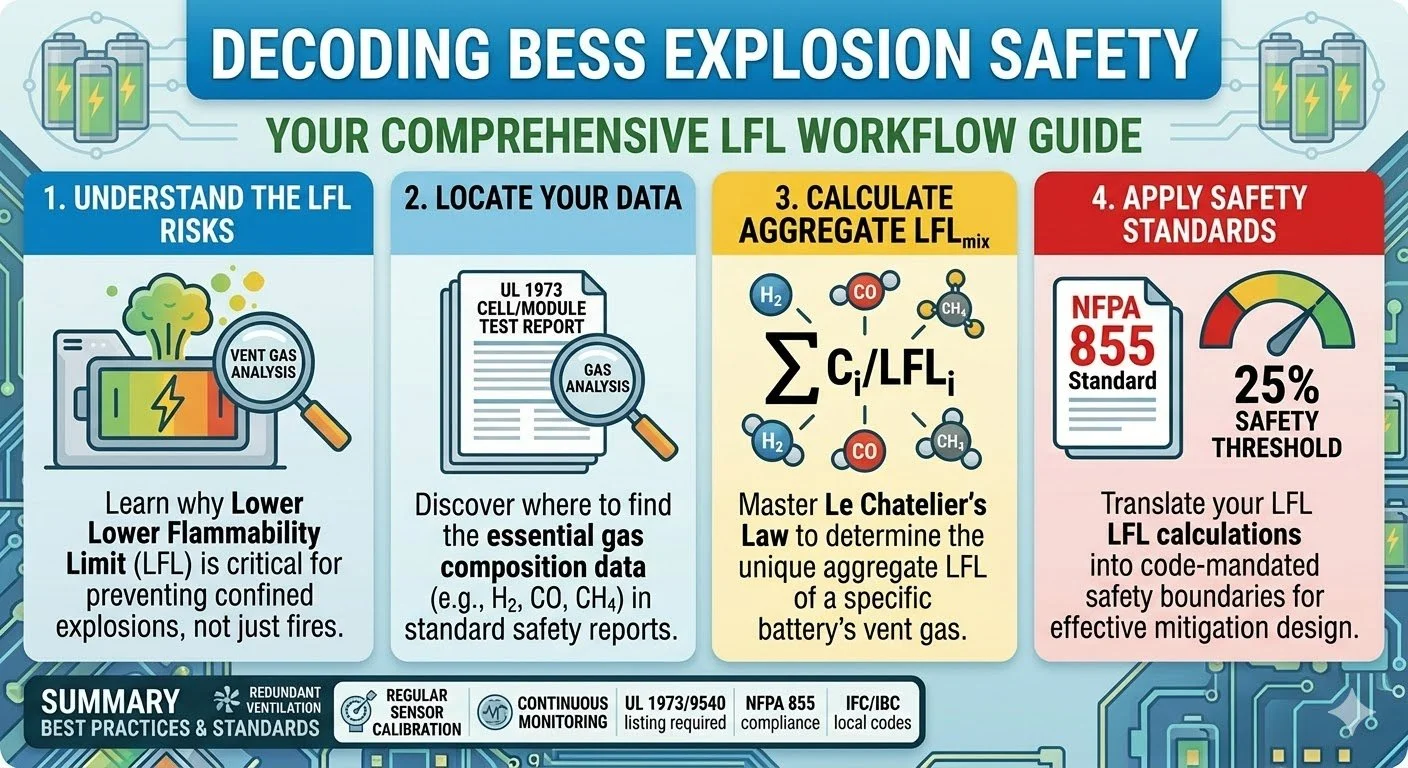 LFL is not just a regulatory compliance number; it is the fundamental indicator of risk. An erroneous LFL calculation means your ventilation system may be undersized, and your enclosure is a bomb waiting to ignite. A rigorous, accurate LFL analysis using authentic cell-level outgassing data from a UL 9540A Cell-Level Test Report is the only way to validate that a BESS design can truly prevent an explosion. In this domain, data is not just power; it is the cornerstone of life-critical safety.